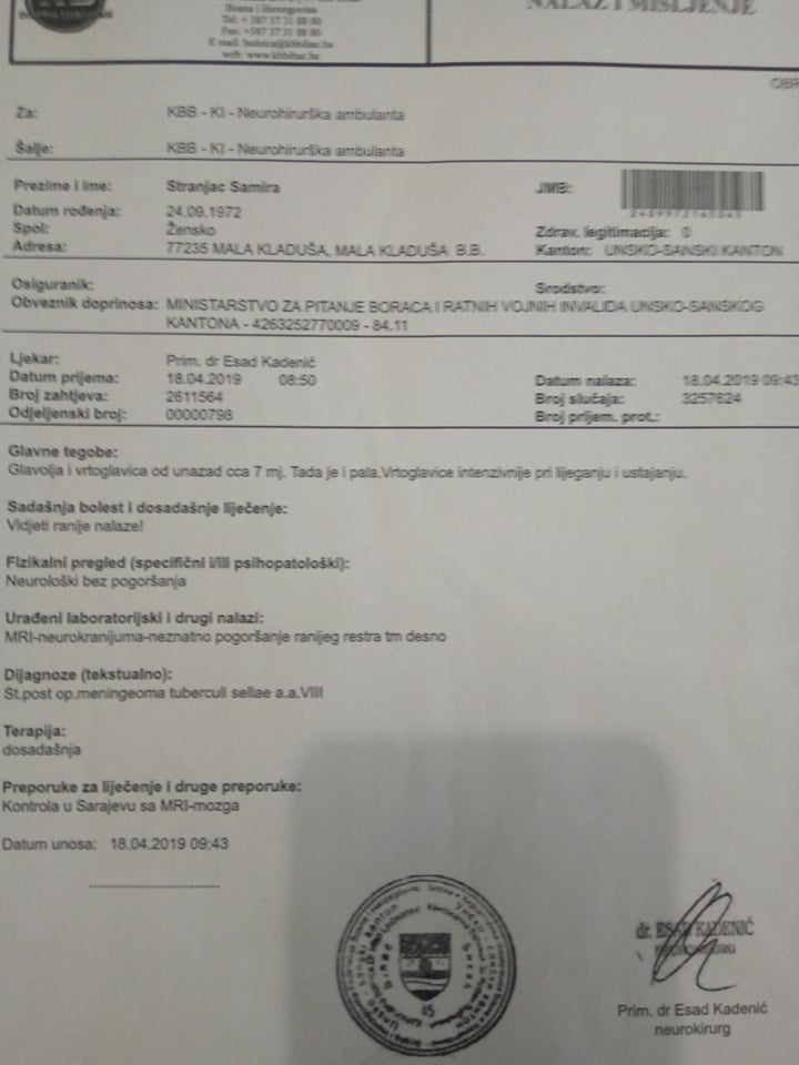 Naime, Samira boluje od agresivnog tumora na mozgu kojeg je 2010. operisala u Sarajevo, ali se ponovo vratio i naglo se razvija.
