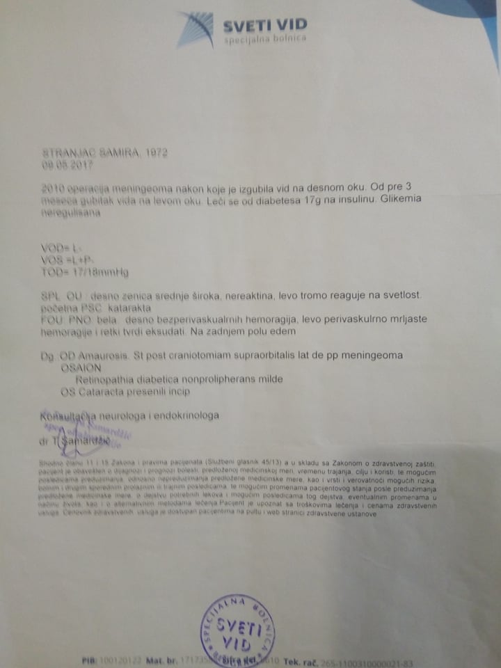 Nažalost, Samirino zdravstveno stanje, uslijed nemogućnosti adekvatnog liječenja se posljednjih mjeseci znatno pogoršalo te joj je na zadnjem ljekarskom pregledu predložena hitna operacija u Zagrebu koja iznosi 8.000 eura.