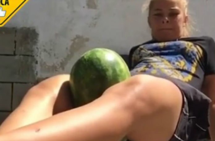 Naime, na Facebook stranici “Uživo sa balkanskih ulica” objavljen je video snimak djevojke koja je stavila lubenicu među noge, par puta jače stisnula i prepolovila je.