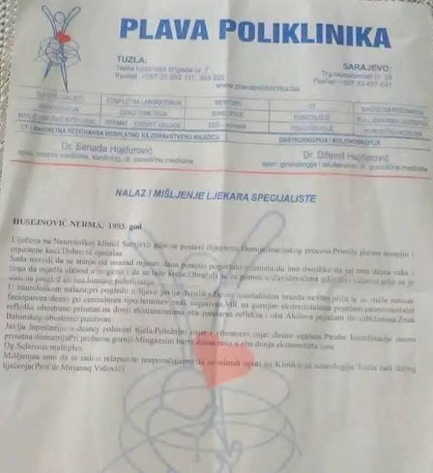 Njena porodica objašnjava da tako tvrde ljekari, no da bi se otkrila tačna bolest i sami uzroci potrebno je uraditi detaljne pretrage u specijaliziranoj bolnici Acibadem u Republici Turskoj, za što ova dvadesetpetogodišnjakinja nema sredstava.