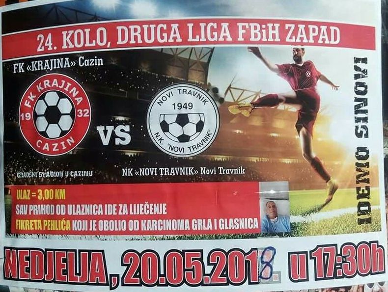 U humanitarnu akciju se uključio Fudbalski klub Krajina Cazin gdje će prihod od ulaznica na nedjeljnom derbiju protiv Novog Travnika ići za liječenje Fikreta Pehlića.