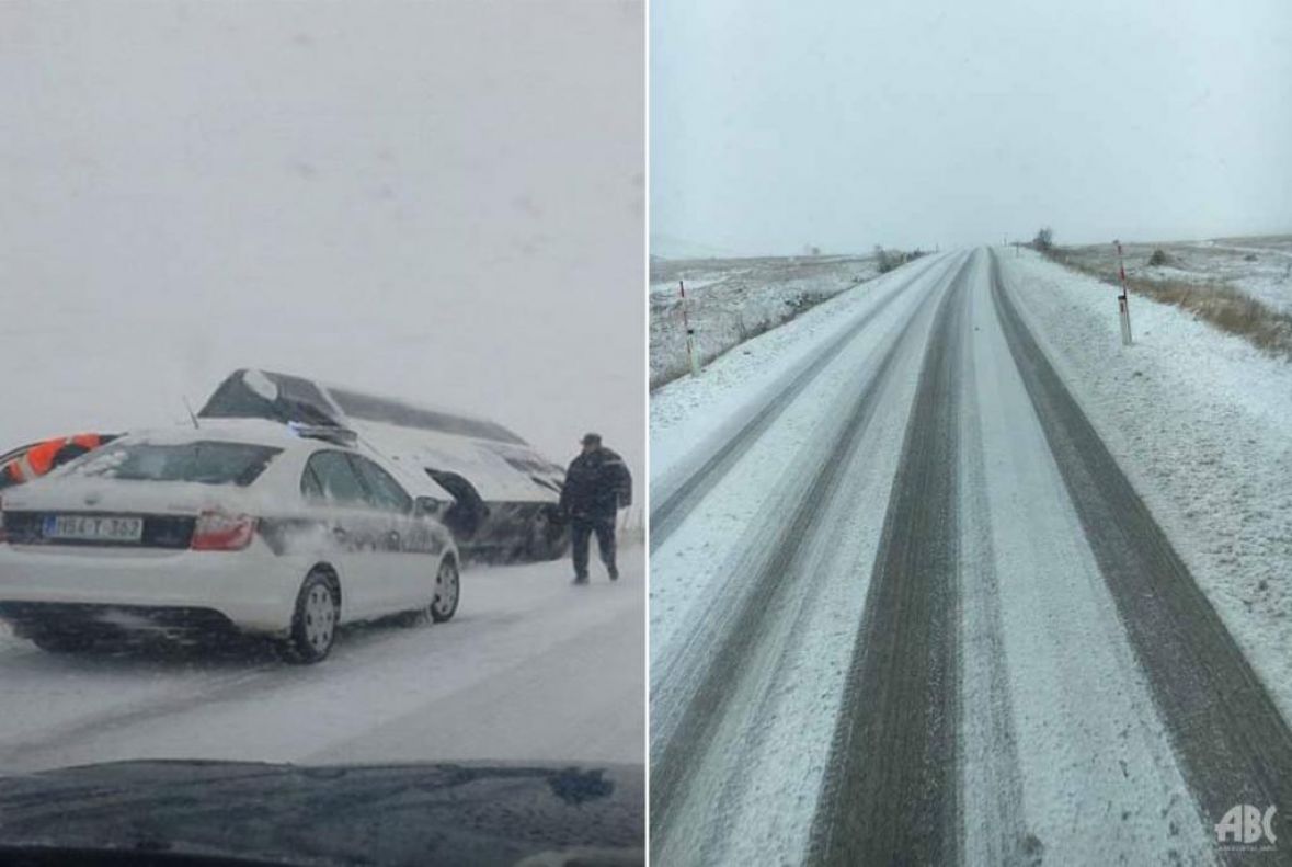Izbjegnuta tragedija: Autobus zbog snijega skliznuo s ceste i prikliještio auto
