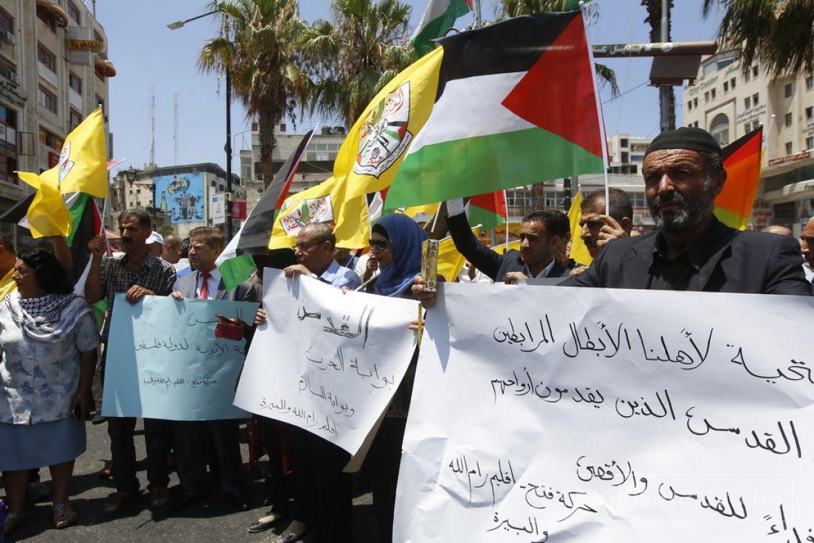 Okupljeni su na protestima, održanim ispred zgrade palestinskog Ministarstva za vjerska pitanja i vakufe, nosili transparente kojima su pozvali Izrael da prestane sa napadima u Al-Aksi i da omogući muslimanskim vjernicima da slobodno praktikuju svoju vjeru.