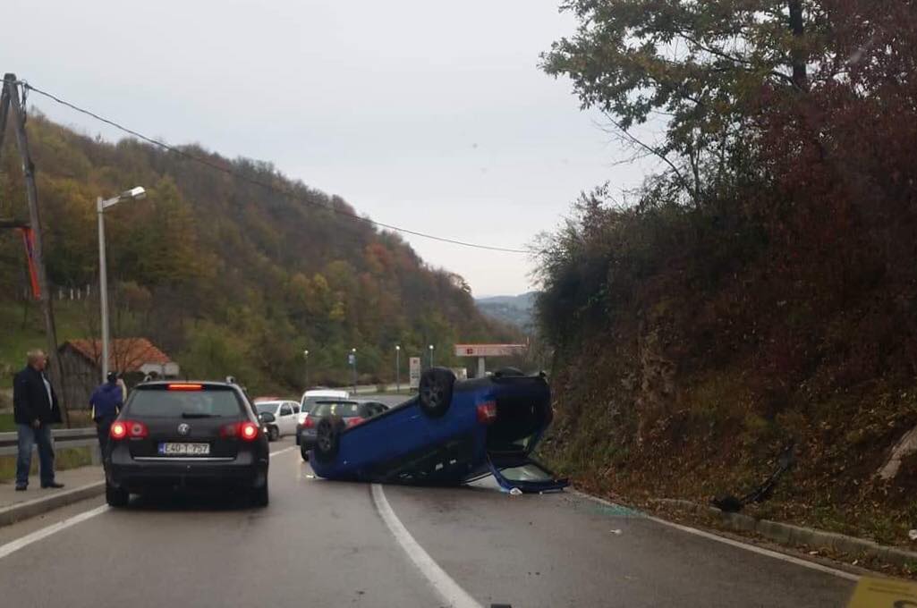 NEZGODA U PEĆIGRADU: Automobil završio na krovu, dvije osobe povrijeđene