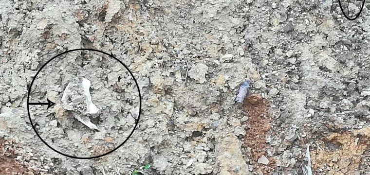 Danas u popodnevnim satima porodica Sulejmanagić je prolaskom trotoarom pored razrušenog mezarja primjetila da je kiša isprala iz tla nekoliko kostiju, a slike možete vidjeti u prilogu: