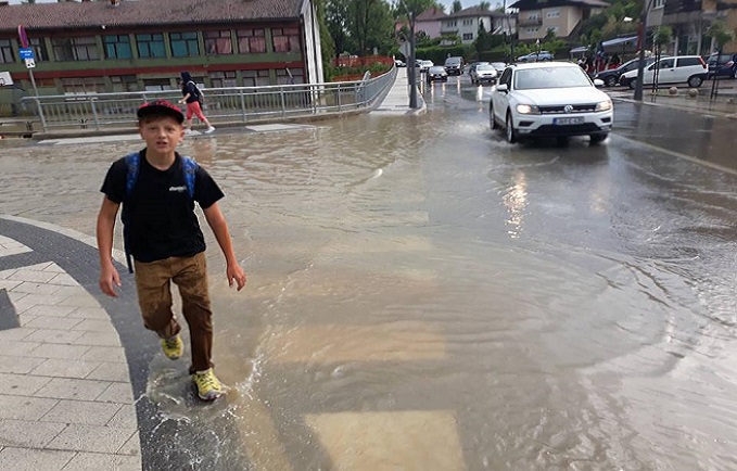 Zbog velike količine vode bilo je otežano kretanje i saobraćanje pojedinim cazinskim ulicama.