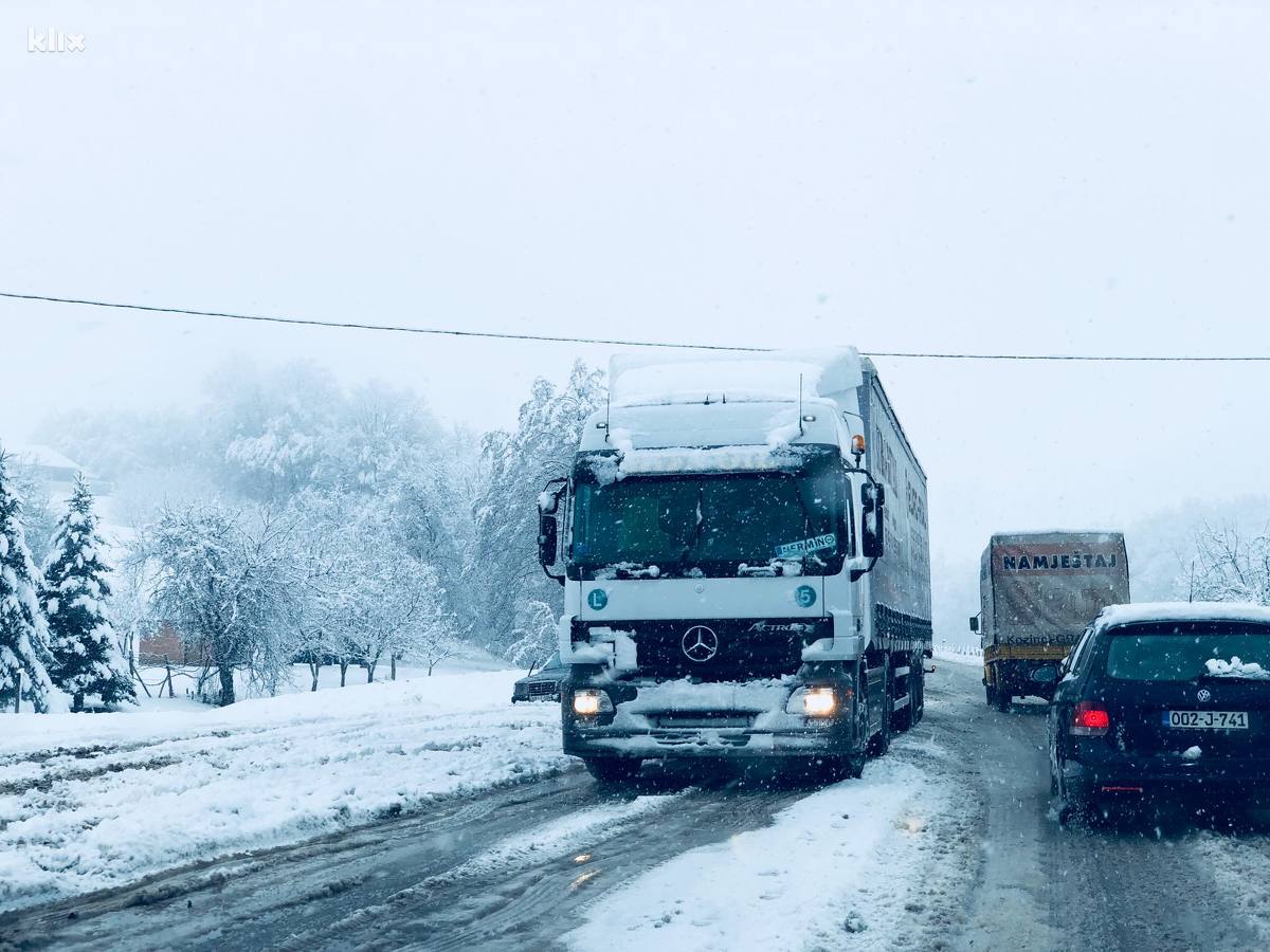 Iz BIHAMK-a navode da se zbog ugaženog ili raskvašenog snijega na kolovozu, kao i poledice, te povremeno intenzivnijih padavina, otežano saobraća u sjeverozapadnim i mjestimično u sjevernim i jugozapadnim krajevima naše zemlje. U ovim područjima za teretna vozila preporučuje se korištenje lanaca.